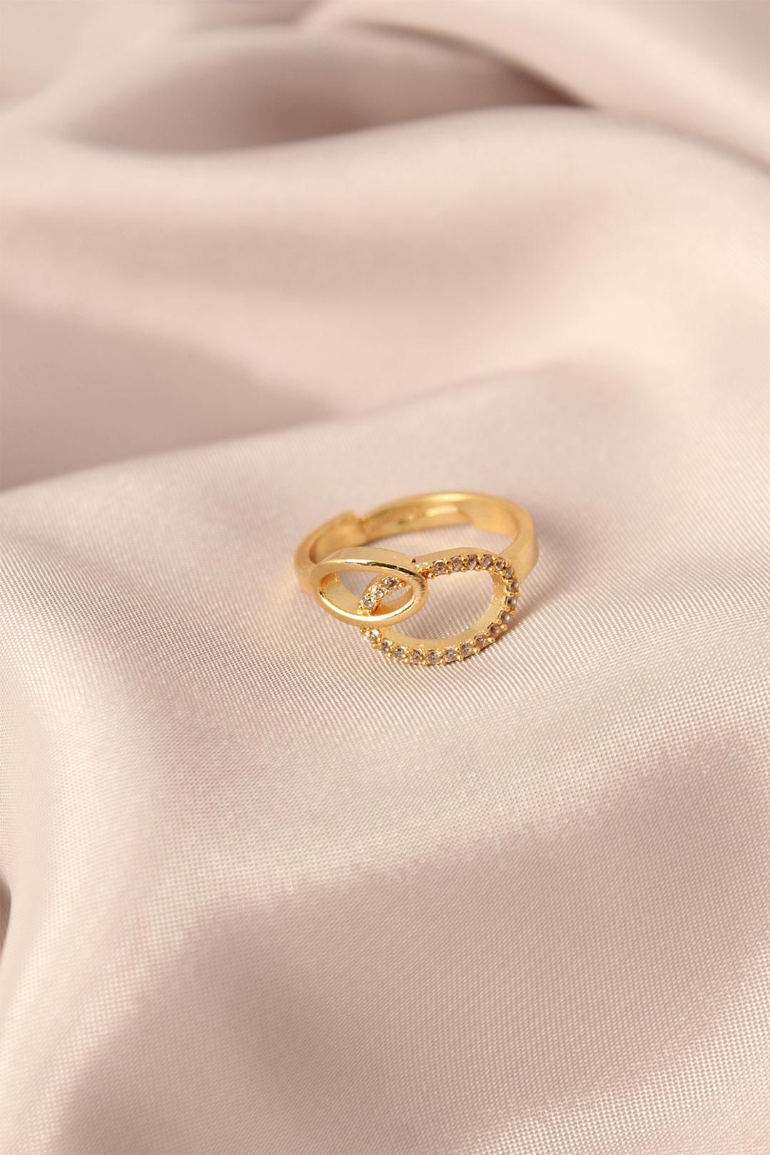 Altın Renk Metal Zirkon Taşlı Ayarlanabilir Kadın Yüzük