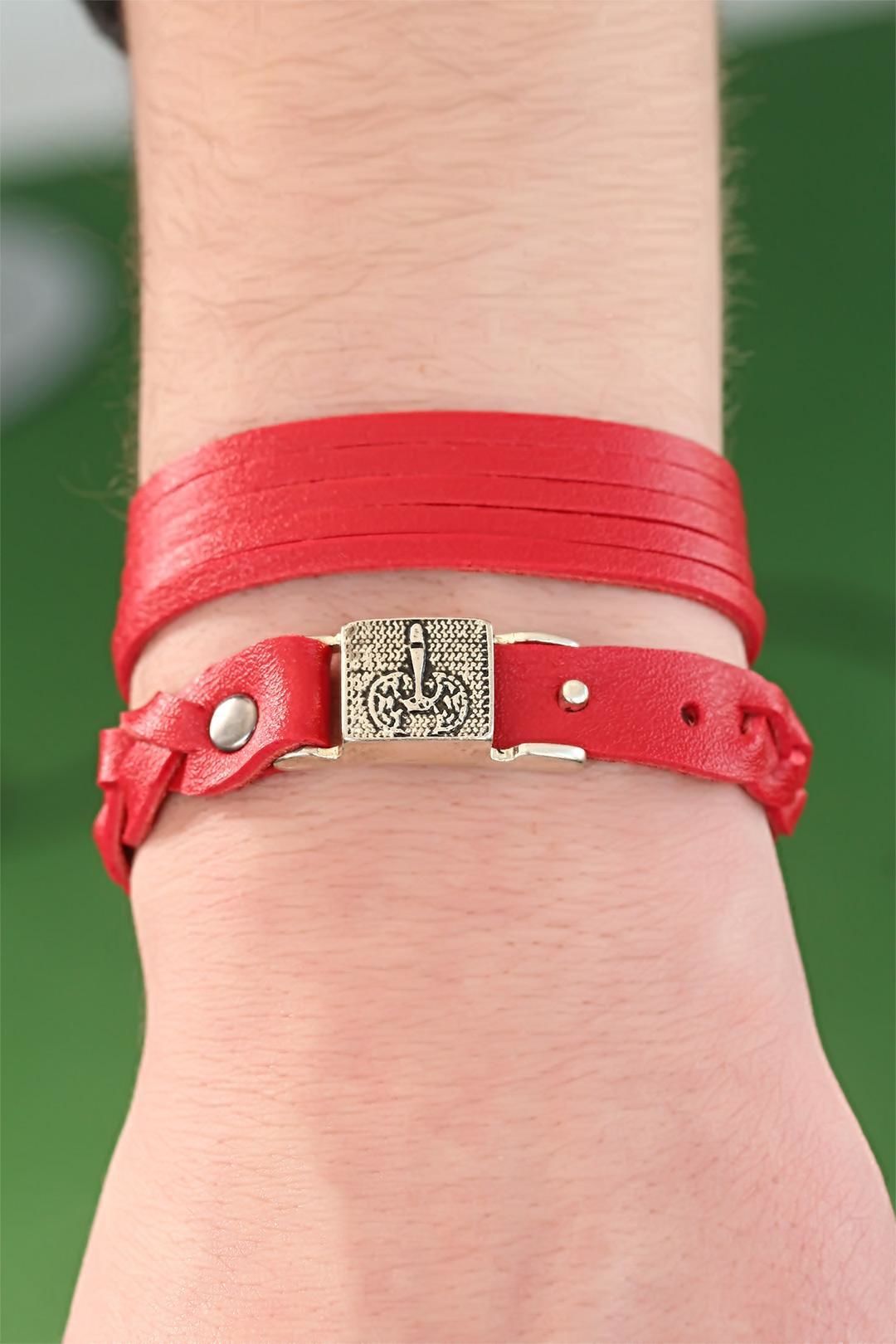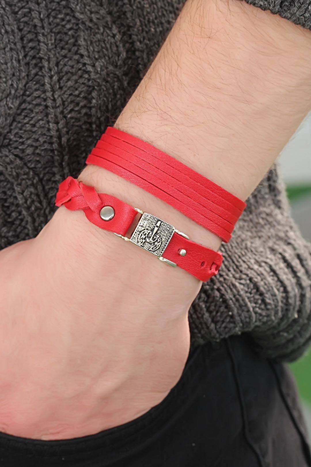 Harika tarzınızı Metal Aksesuarlı Kırmızı Renk Deri Erkek Bileklik Kombini ile tamamlayın.