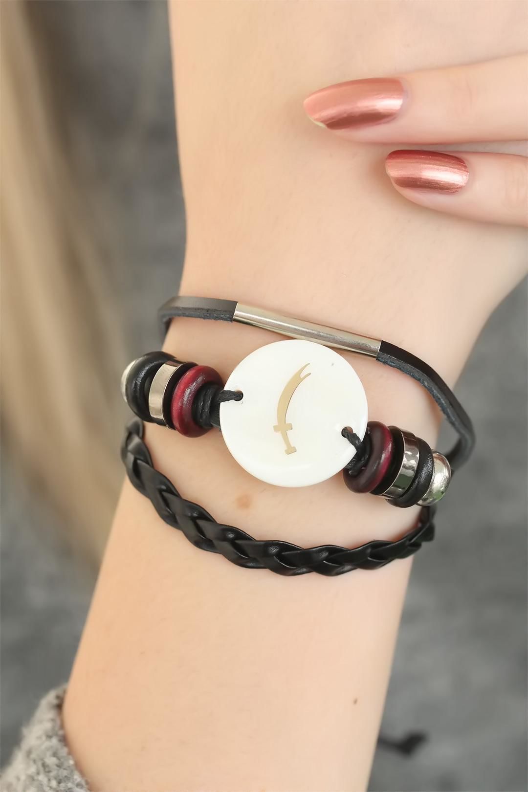 Tarzınızı Siyah Renk Zülfikar Kılıçlı Tasarım Çoklu Deri Bayan Bileklik ile güncelleyin.