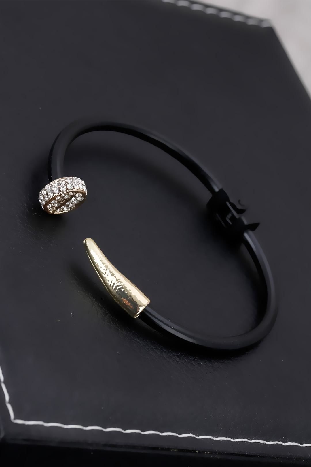 Siyah renk tasarım dore ve zirkon parlak taşlı aksesuarlı Yeni Trend Bayan Kelepçe Bileklik